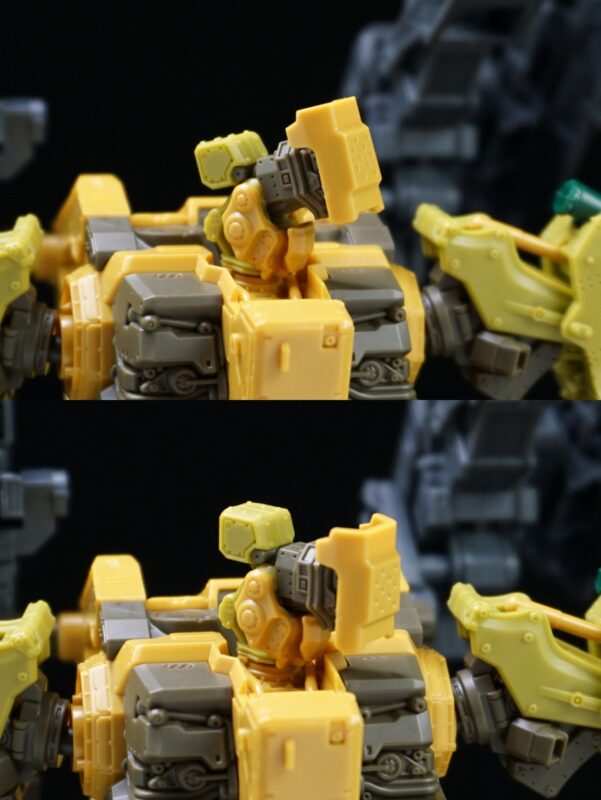肩バズはロックスミスの武装としても印象的。あっちは装備箇所の左右が逆ですが、今回付属のものではでっちあげでも右肩装備にするのは難しそう。